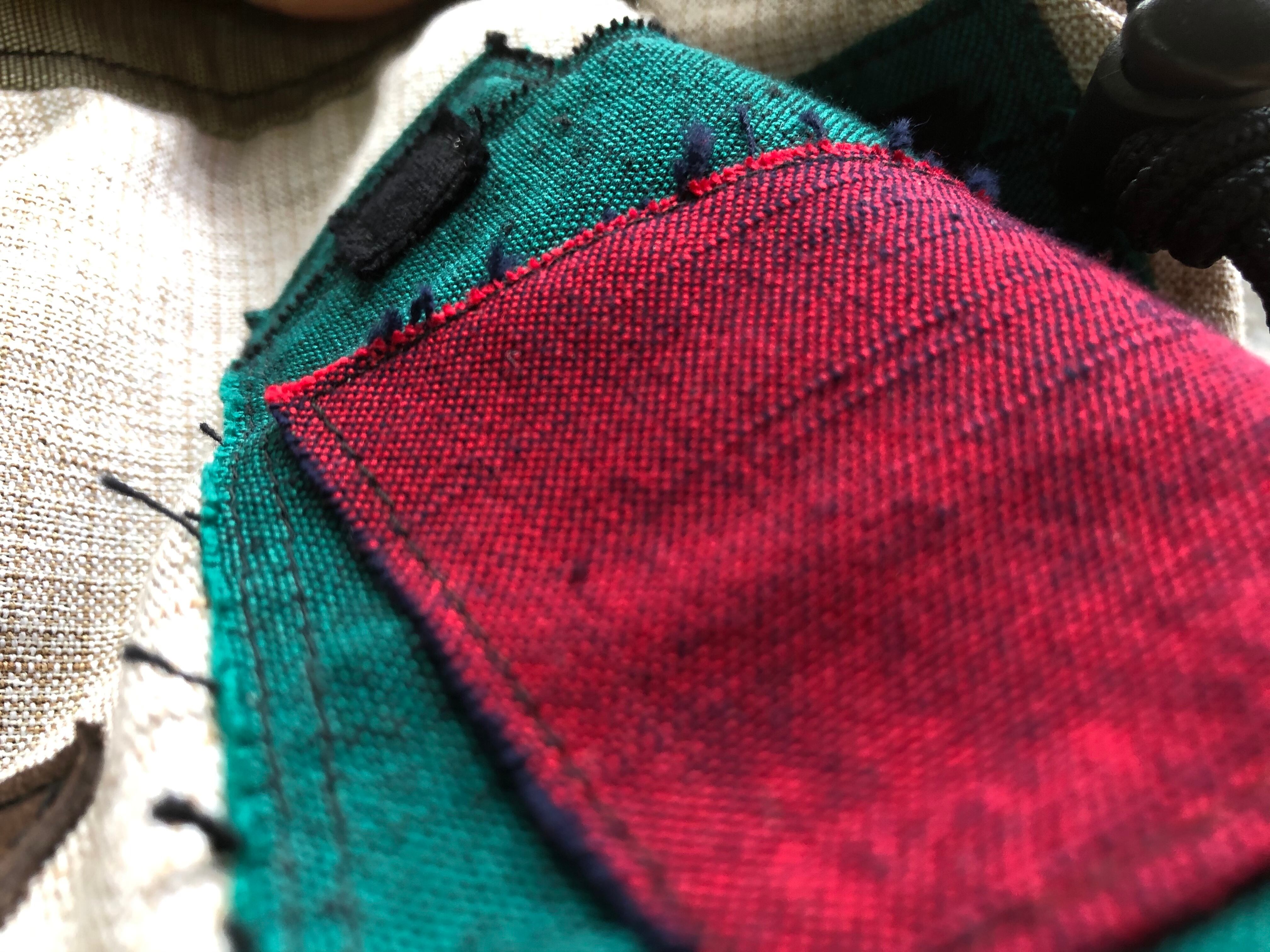 久留米かすりの切端でつくられたクレイジーなカエル。